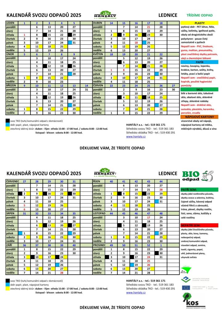 Kalendář svozu odpadů 2025