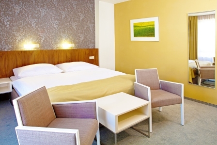 Pokoje jsou moderně a komfortně zařízeny designovým nábytkem a poskytují tak lázeňským hostům při ubytování v Lednici nejvyšší pohodlí. Pro pohodlný, zdravý a ničím nerušený spánek jsou pro Vás na lůžkách přichystány zdravotní matrace a antialergické lůžkoviny. Bezdrátový internet po celém hotelu je samozřejmostí.