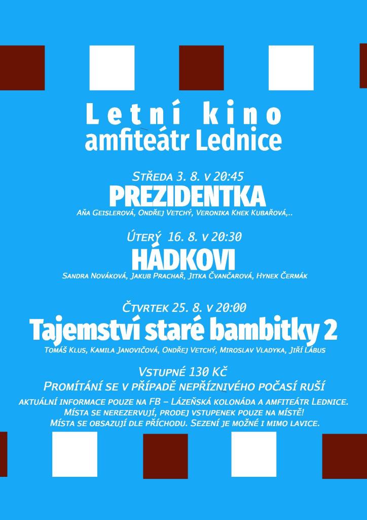 Promítání se v případě nepříznivého počasí ruší. Místa se nerezervují, prodej vstupenek pouze na místě! Místa se obsazují dle příchodu. Sezení je možné i mimo lavice.