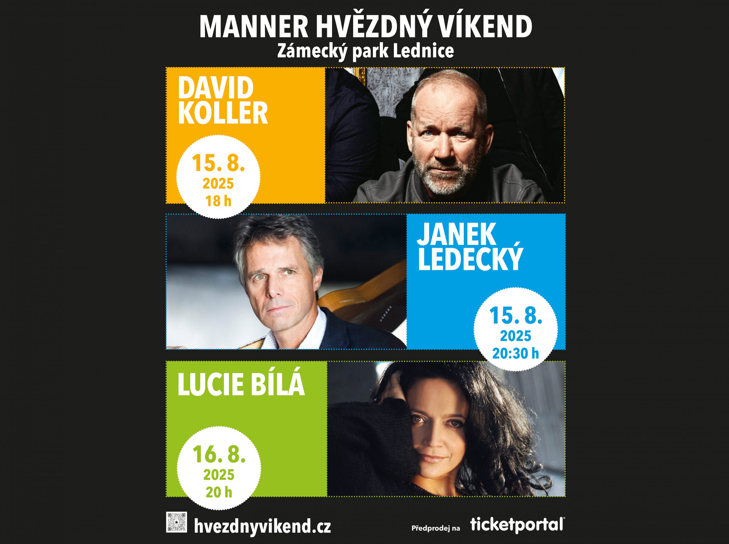 V pátek 15. srpna od 18 hod. vystoupí David Koller a následuje koncert od 20:30 hod. Janka Ledeckého.