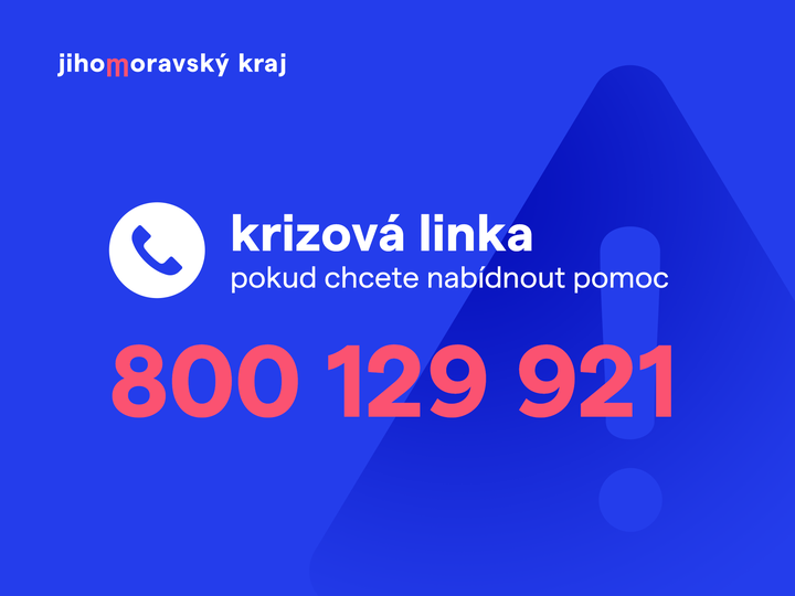 Jihomoravský kraj aktivoval krizovou linku. Slouží pro nabídku pomoci obcím zasaženým tornádem. Fungovat bude nonstop i o víkendu. Tel: 800 129 921 E-mail: dobrovolnici@jmk.cz