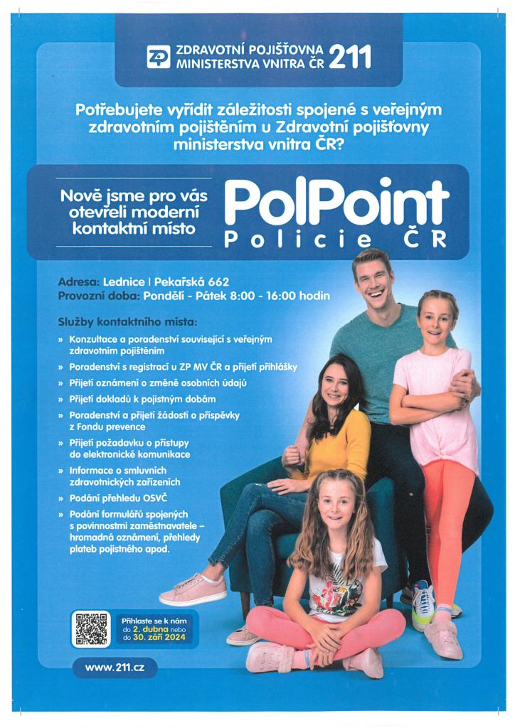 Dnes, 18.3.2024, bylo v Lednici otevřeno kontaktní místo Police ČR a Zdravotní pojišťovny ministerstva vnitra ČR 211 - POL POINT.