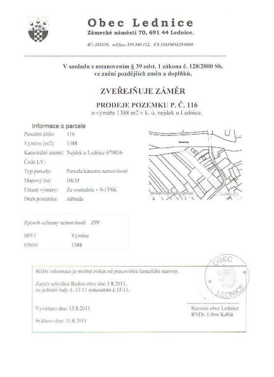 Úřední deska - Prodej pozemnku v k.ú. Nejdek